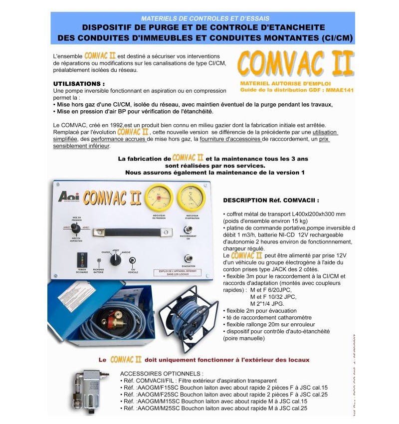 • COMVAC II - Dispositif de purge et de controle d'étanchéité Complet avec Enroule