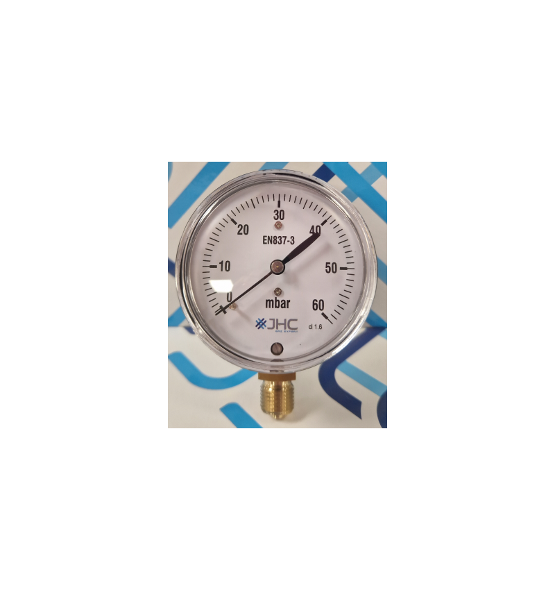 * MANOMETRE à Aiguille 0/60 mbar JHC nu Ø 63 - Raccord mâle G1/4" - CL 1.6 - Graduations tous les mbar CL 1,6 Livré sans gaine de protection référence