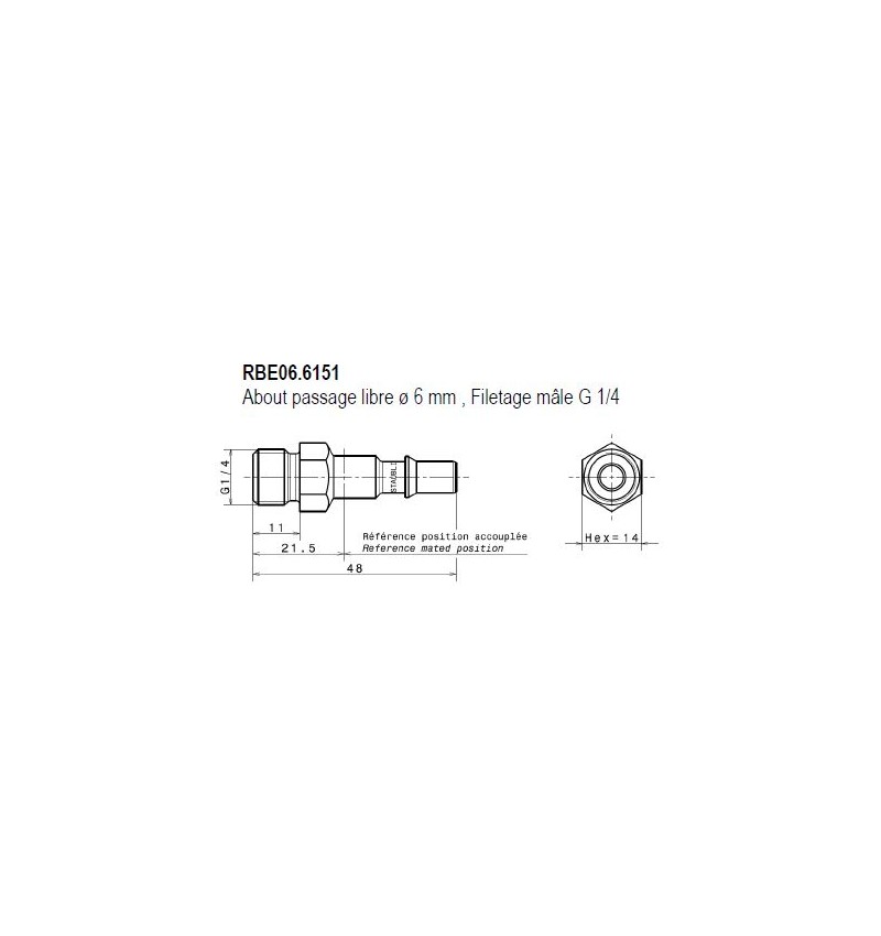 METR - ABOUT Dia 6 STAUBLI male / filetage Male G1/4 RBE06.6151 staubli -8242466