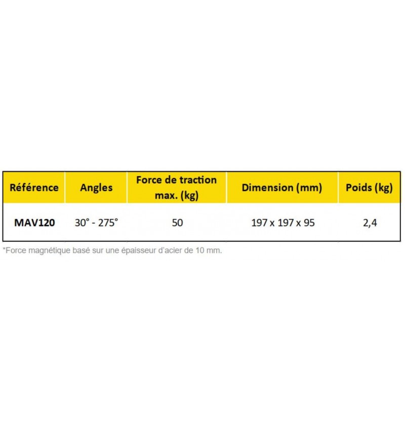 ÉQUERRE Magnétique ADJUST-O ANGLE - MAV 120 Angles 30°-275° - Force de traction