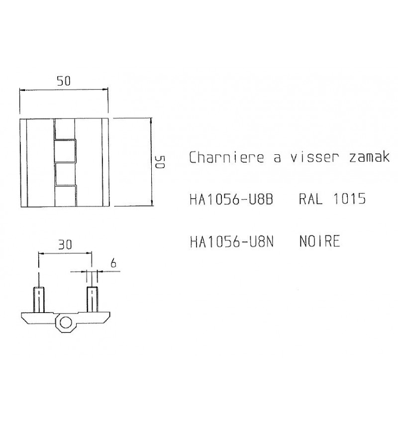 Charnière à visser Zamack RAL 1015 IVOIRE - 50x50 mm